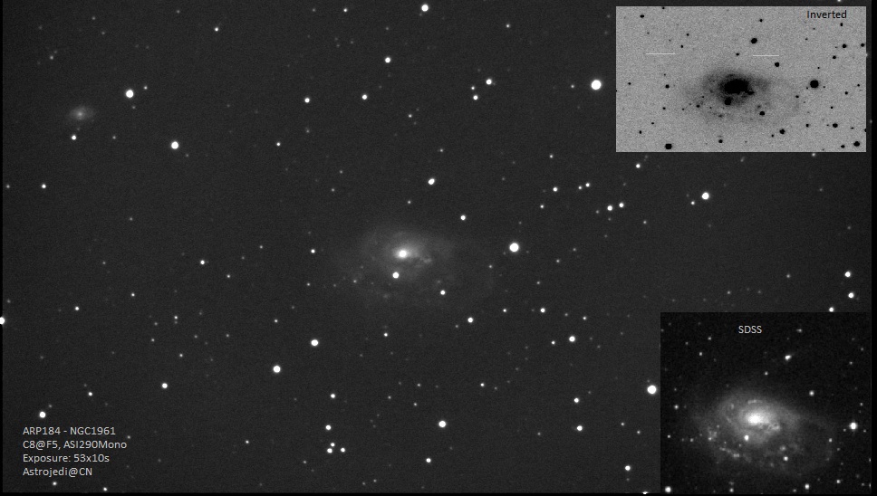 There are 2 insets. First is an inverted image of the capture. The second is the SDSS image as a reference.