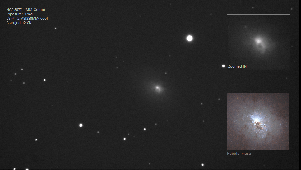 NGC3077 is more of an interaction than a collision… at least not yet… This is using just 4s sub exposures with the ASI290MM Total – 50x4s