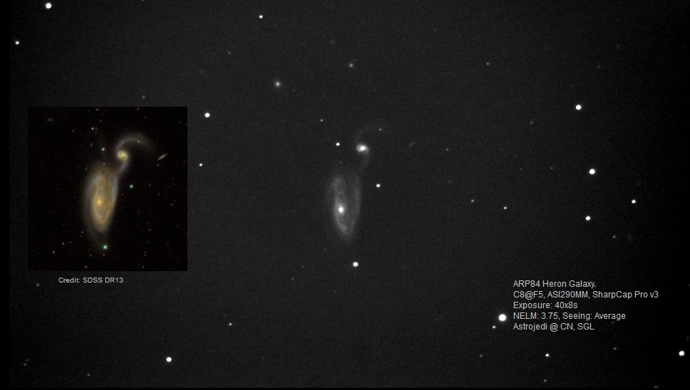 Here is another one from the S&T article. The Heron galaxy (ARP84). Big fish eats the little fish… applies at all scales in this universe.