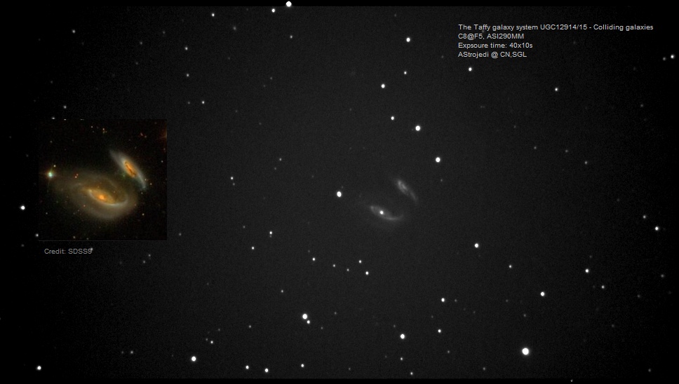 I was not able to capture the bridge of gas between the two systems as it is too faint for my light polluted location using EAA but you can just see it in the SDSS9 inset.